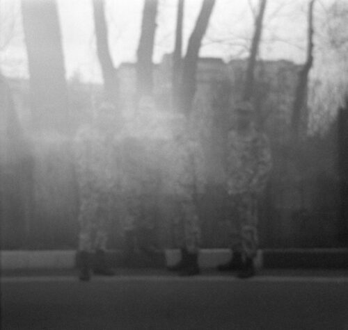 تمهیدات تکنیکی مورد استفادهی تختکشیان در مجموعهی مذکور موفقترین عاملیاست که به او در ساخت این جهان کوچک شده کمک کند. در این جهانِ شمایل سازی شده، سه سطح از فاصله ایجاد میشود تا مخاطب را به اندیشه کردن حول محور ذات تاریک پدیدهی مورد بحث سوق دهد، پدیدهای که همانطور که اشاره شد تنها در نور دیده میشود اما برای درکش باید به تاریکی اندیشید. فاصله نخست تفاوت بصری و ذات تکنیکال عکسها، با تعداد بسیاری از عکسهایی است که روزانه و با توجه به حضور دوربینهای دیجیتال و سپس دوربینهای موبایل ثبت و منتشر میشود. این تفاوت تکنیکی نکتهایست که مخاطب را درگیر میکند تا در چرایی انتخاب این آپاراتوس بیاندیشد و به دقت در درک دو فاصلهی بعدی برسد. حالا نوبت به آن است تا مخاطب، عکاسی از سوژههای امروزی را با آپاراتوسی بازمانده از جنگجهانی دوم به نام سرباز تفسیر کند. تختکشیان با این انتخاب به جای آنکه به سیاق عکسهای جنگ در زمانهی پس از جنگ، فاصلهی زمانی را برطرف کند، بدین معنی که گذشته را به زمان حال بیاورد و آنرا به نمایش بگذارد، دست به خلق دوبارهی آن میزند. او بدون توسل به تصاویر واقعی جنگ، تنها با استفاده از آپاراتوسی متعلق به دورانی مشابه، زمان حال را به گذشته تبدیل میکند و حالتی پیشگویانه به عکسهایش میبخشد. او با مصداق گرفتن امروز و پیدا کردن وجه شبه آن با گذشته دعوتمان میکند که به هردو زمان در یک آن نگاه کنیم و به آینده بیاندیشیم. فاصلهی سوم از طریق مواجهه اتفاق میافتد؛ آنجایی که تصاویر به خاطر حجم زیاد گرین از فاصلهی نزدیک درست دیده نمیشوند و لازم است تا حداقل یک متر از آنها دور شد تا بتوان شمایلهای تصویر را بازشناخت، اتفاقی که عکاس باز با آگاهی در انتخاب سایز بزرگ عکسها آنرا به خوبی رقم زده است.