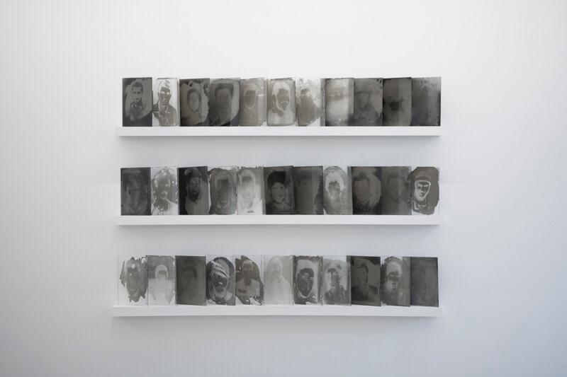 عکسهای مریم تختکشیان واکاوی نوریست که در زمانهی صلح بر همه چیز میتابد. نوری که میتواند گمراه کننده باشد و به توهمی از آگاهی و نه رسیدن به دانش حقیقی بیانجامد. تختکشیان با استفاده از دوربین قدیمی آگفا ایسولت که به دوربین سرباز معروف است و در جنگ جهانی دوم مورد استفاده قرار میگرفته و همچین نگاتیوهای تاریخ مصرف گذشته، تصاویری از سربازهای ایرانی امروز را ثبت کرده است که هم به خاطر ویژگی دوربین و هم نگاتیو، تار، ناواضح و پر از گرین هستند. در بخش دیگری از نمایشگاه، عکاس پرترههایی از شهدای جنگ هشت سالهی ایران و عراق را از روی مزار آنها عکاسی و سپس با تکنیک کلودیون تر آن ها را ظهور کرده و نگاتیوها و پوزتیوهای شیشهایشان را به نمایش گذاشته است. فرم چیدمان مجموعه از تصاویر ایستاده سربازان شروع میشود و در ادامه به تصویر خوابیدهی آنها که حالتی مرده وار دارند میرسد. سپس چندین پرتره از شهدا را که پیشتر توصیفشان کردیم میبینیم و در کنار آنها برگی از صفحهی آخر شناسنامهای که کلمهی شهید بزرگ روی آن نوشته شده است. چهرهی هیجکدام از سربازان مشخص نیست و این موضوع در تقابل با تک چهرهی شهدای واقعی میتواند قصهای مجزا را تعریف کند؛ موضوعی که خود میتواند فتح باب خوانشی روایی از این مجموعه باشد که هدف صحبت این یادداشت نیست.